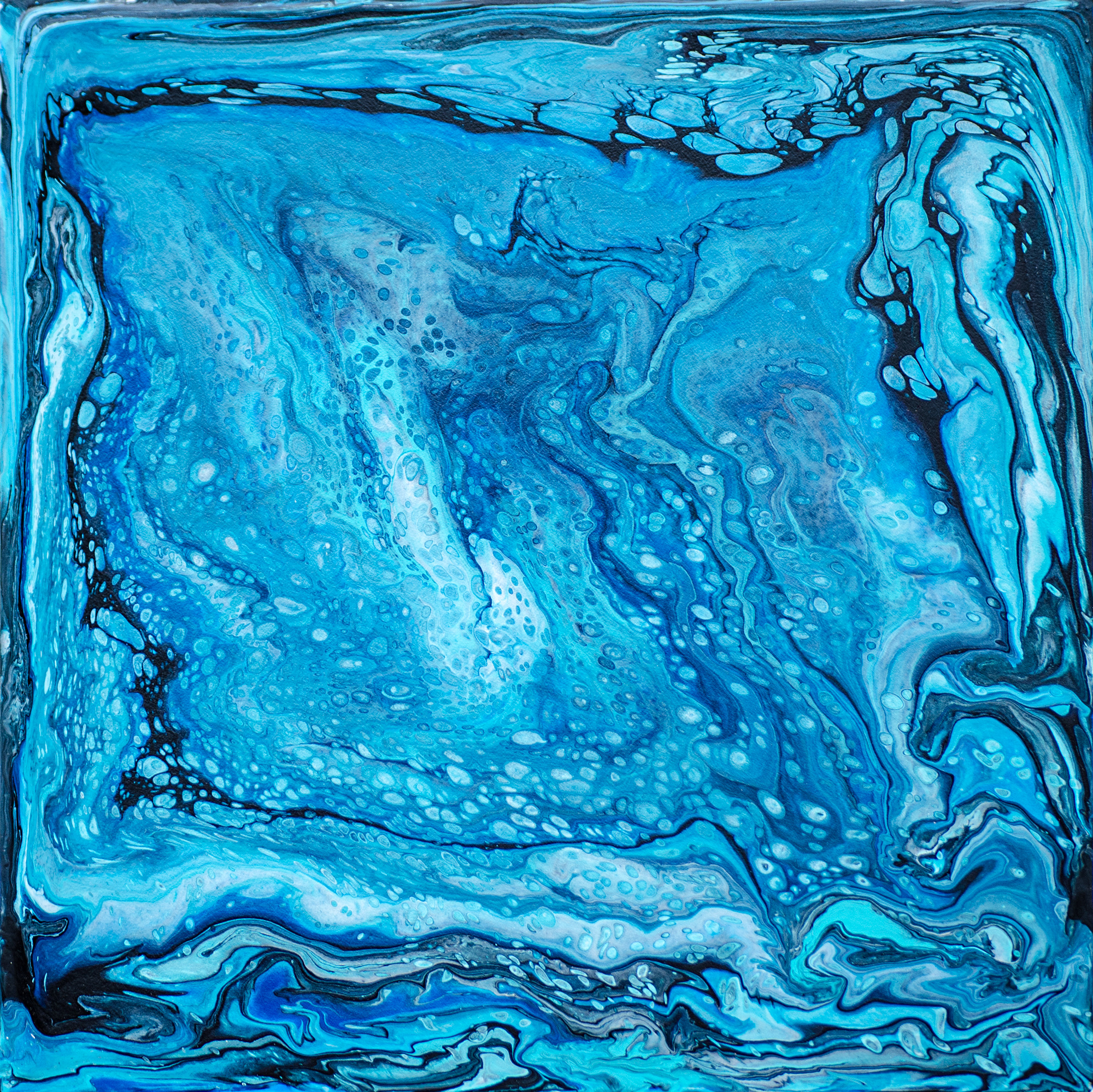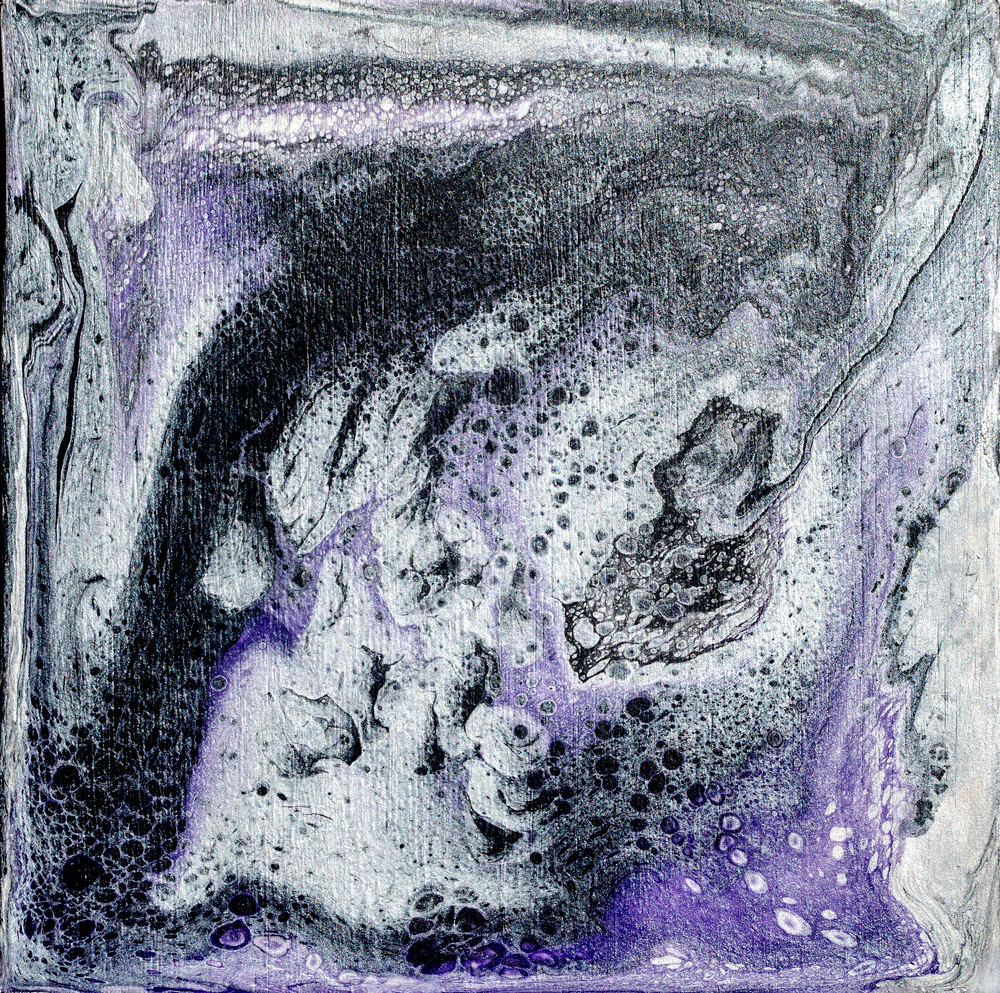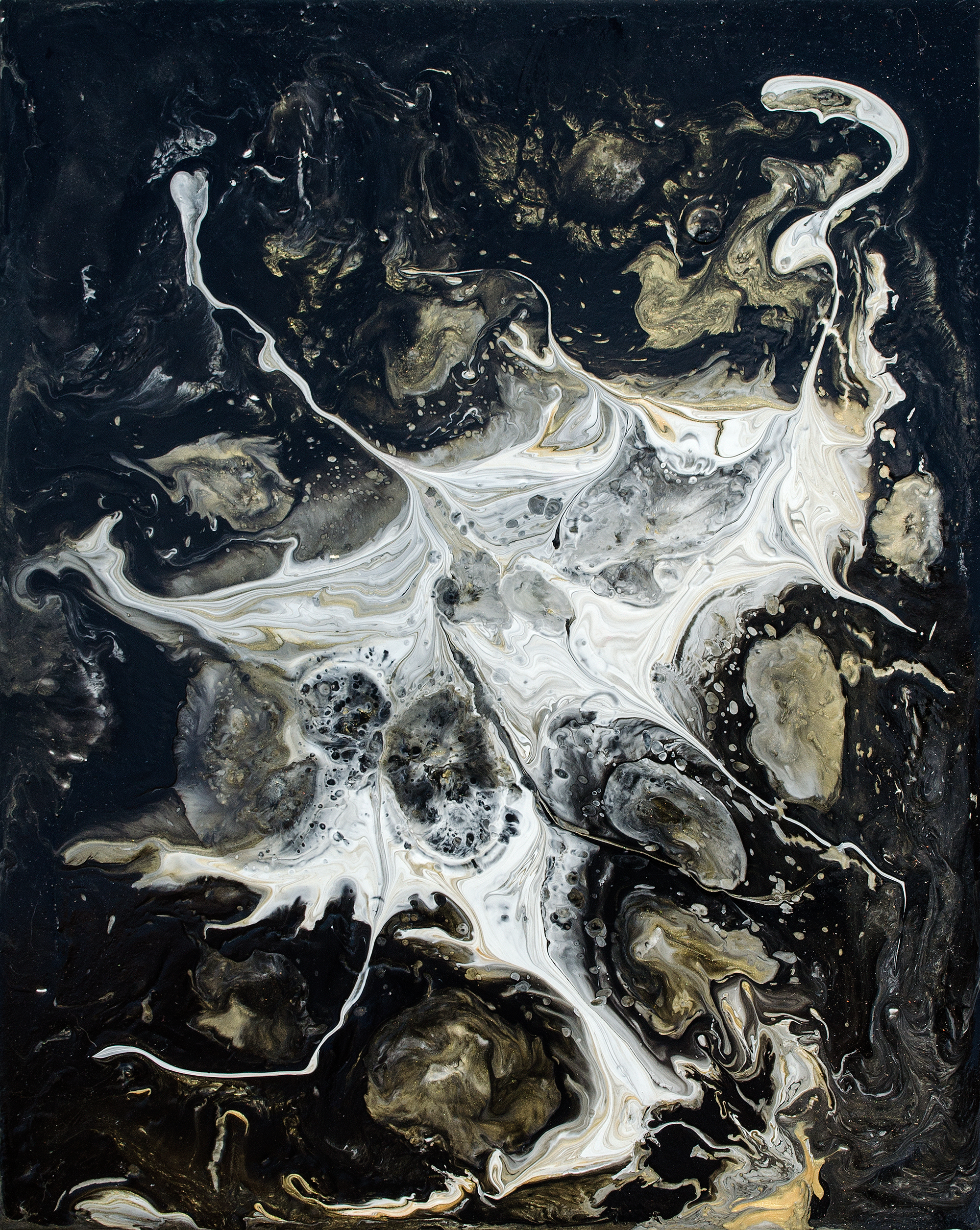 I like to make paintings using several different “paint pouring” techniques: several colors of paint go into a cup, then you add something like rubbing alcohol or silicone oil and pour it on the canvas, producing fascinating effects as the paint dries.